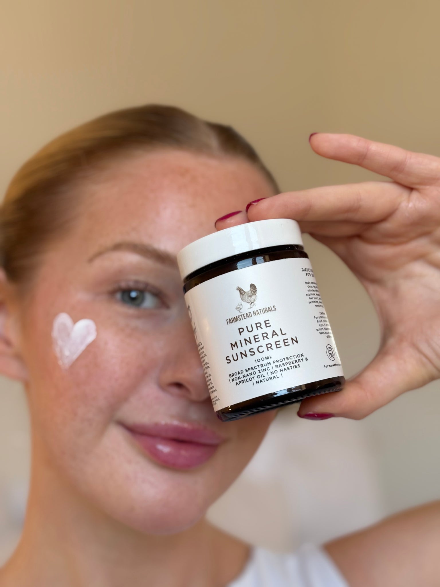 This sunscreen wears beautifully under makeup, leaving a smooth, dewy base. For those with oily skin, you can apply your usual setting powder over the top — or, to keep it fully natural, simply dust on a tiny amount of arrowroot powder to reduce shine and set your look.